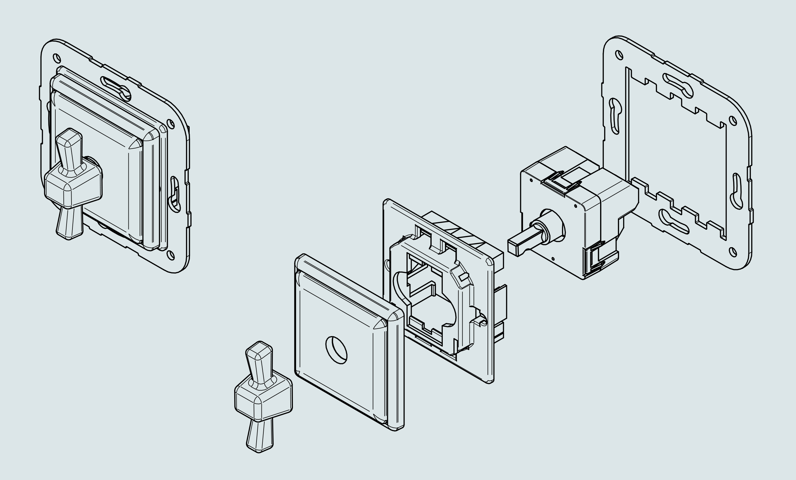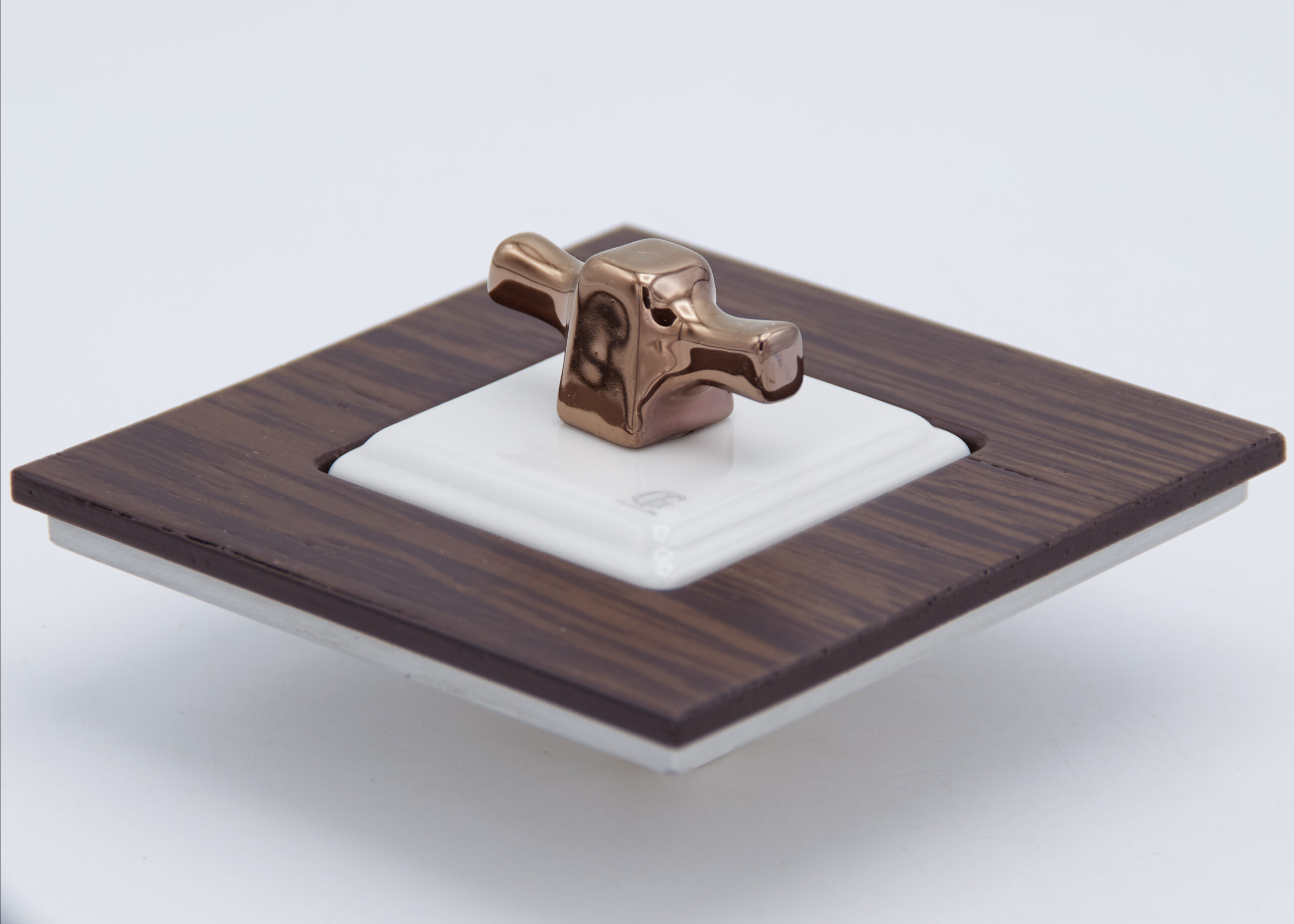 Una reinterpretazione dello stile decorativo degli anni Sessanta – Settanta, declinato in una gamma di interruttori dal carattere grafico e deciso. Una celebrazione del fascino rétro tipicamente italiano, avvalorato dalla cura artigianale e da un bilanciato equilibrio dei componenti.