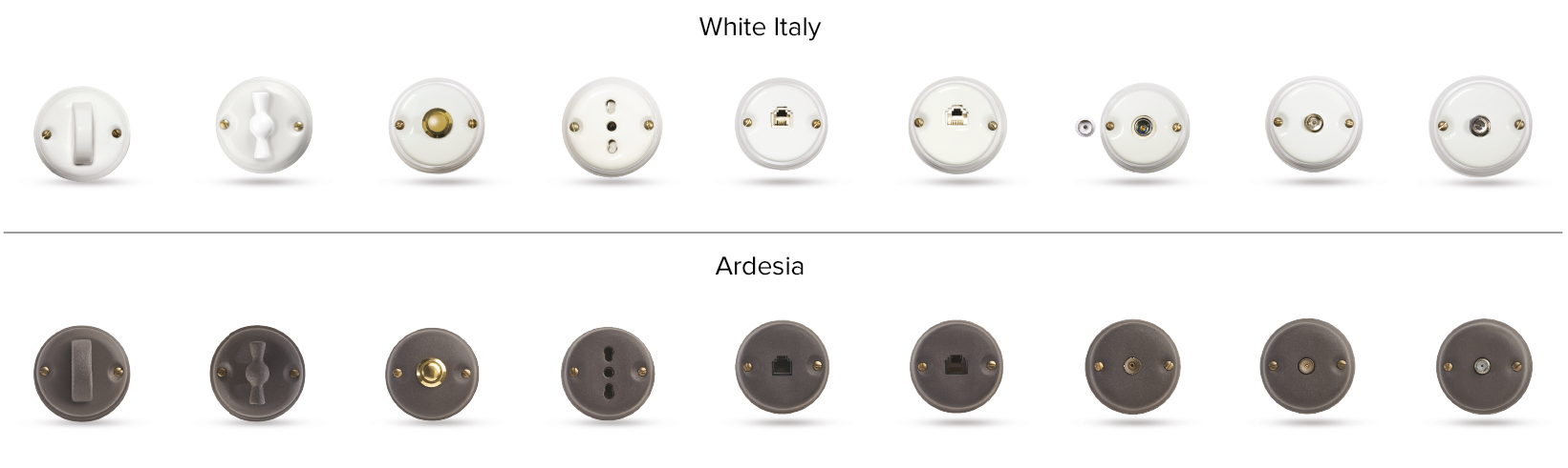 Di seguito tutte le calotte degli articoli compatibili con le basette della collezione Essenza. In porcellana bianca o antracite.